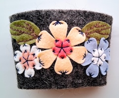 Description: Keep your drink warm and fingers comfy with this fun cozy. Very simple embroidery stitches and the included components will have you drinking your favorite beverage in style. Bring the cup you wish your cozy to fit to class. Assorted colors.